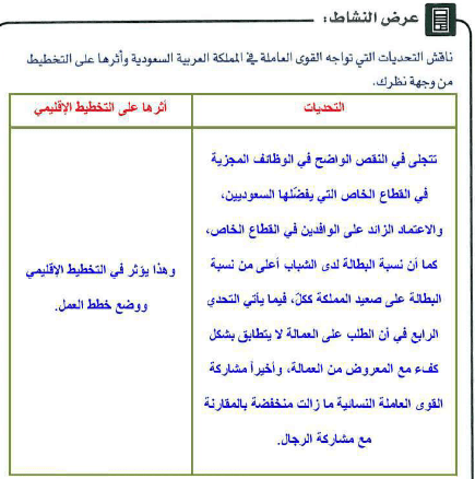 ناقش التحديات التى تواجه القوى العاملة فى المملكة العربية السعودية سؤال وجواب