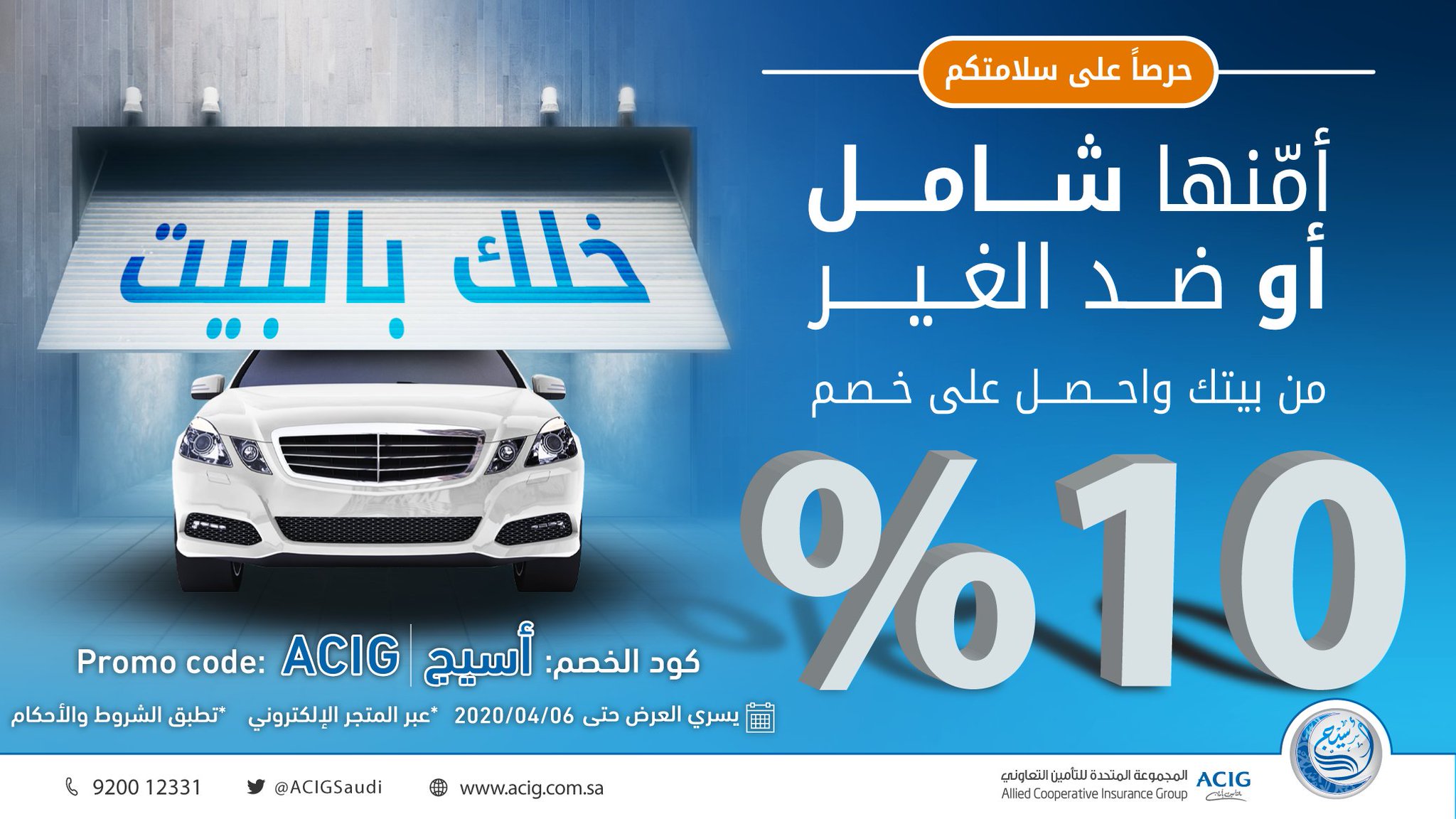 أسيج Acig On Twitter حرصا على سلامتكم خلك بالبيت واحصل على خصم 10 على تأمين سيارتك الشامل وضد الغير فورا استخدم كود الخصم أسيج أو Acig من خلال المتجر الإلكتروني Https T Co Qbbs7dw9xc