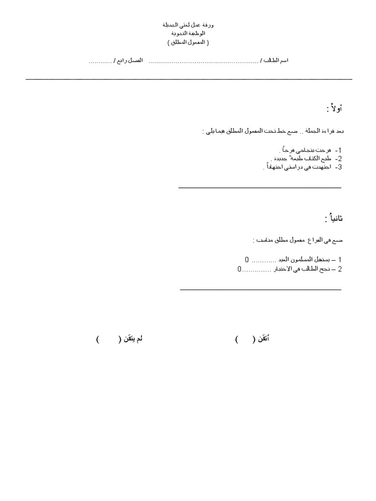 أوراق عمل رس المفعول المطلق للصف الثاني متوسط مادة لغتي وفق أنماط التعليم المتمايز Shms Saudi Oer Network